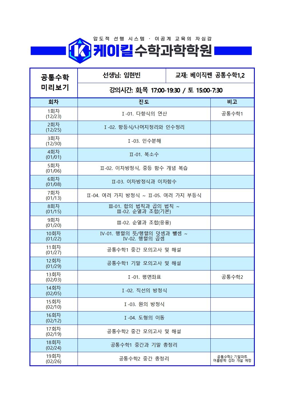* 수업시간을 확인하세요.