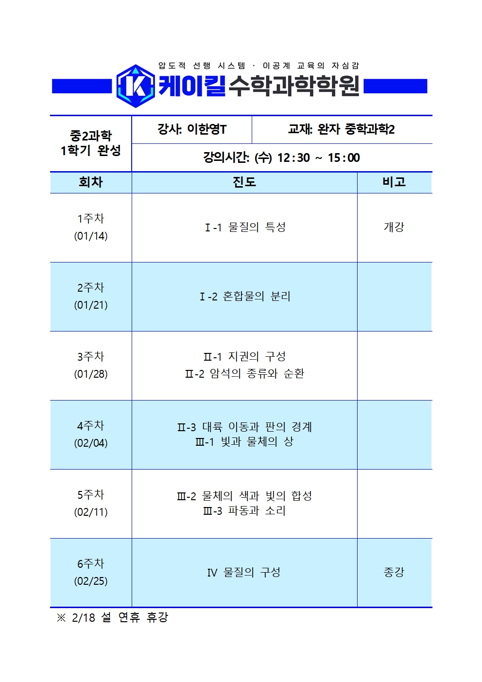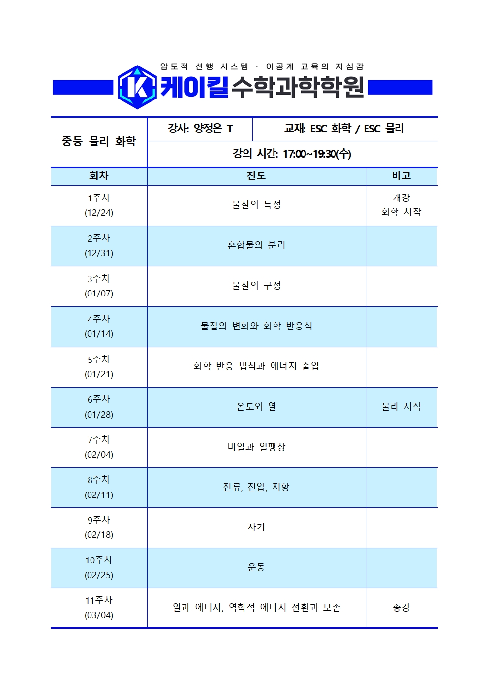 추가) 중2, 중3 화학 완성반