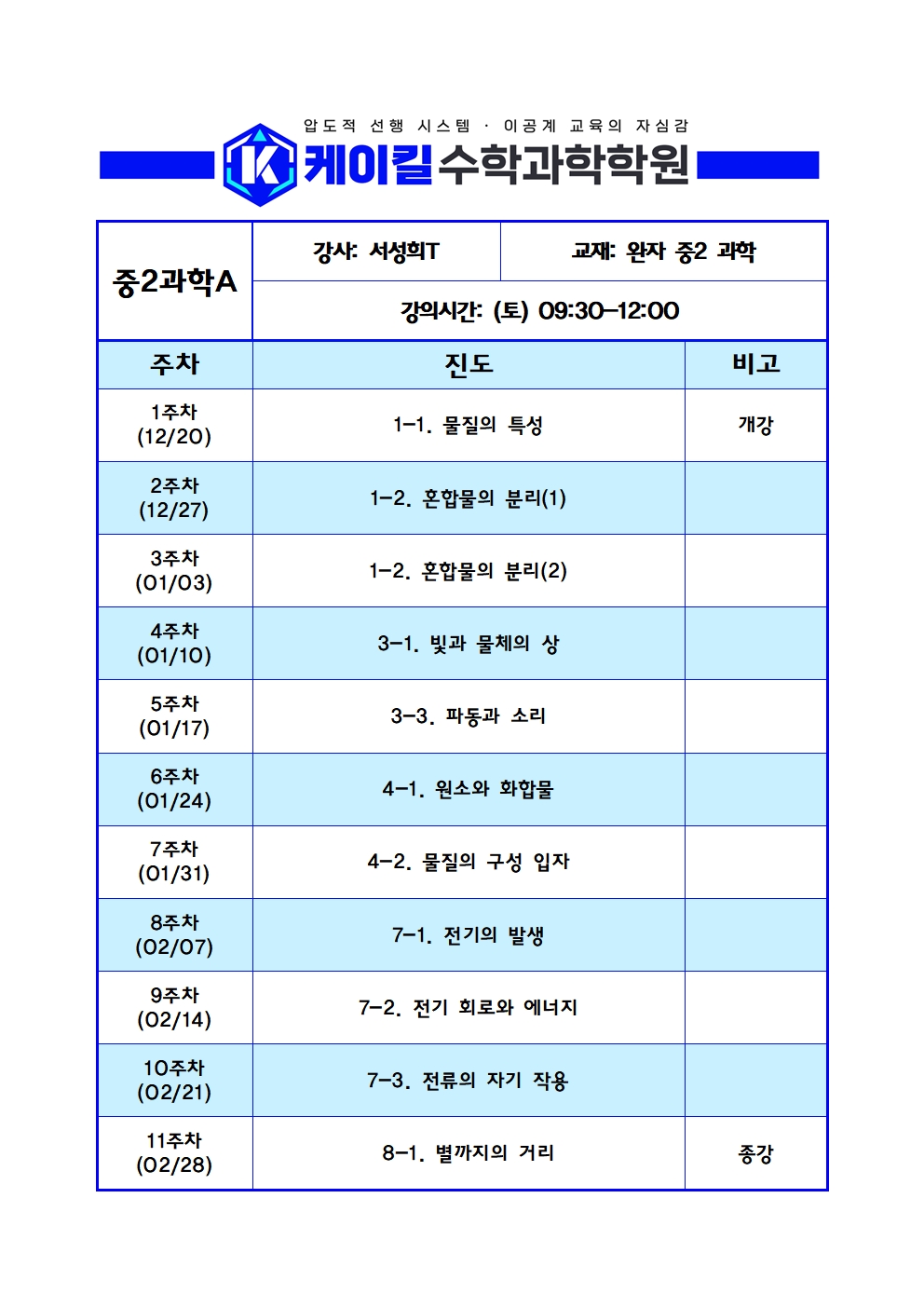 추가) 중2, 중3 화학 완성반