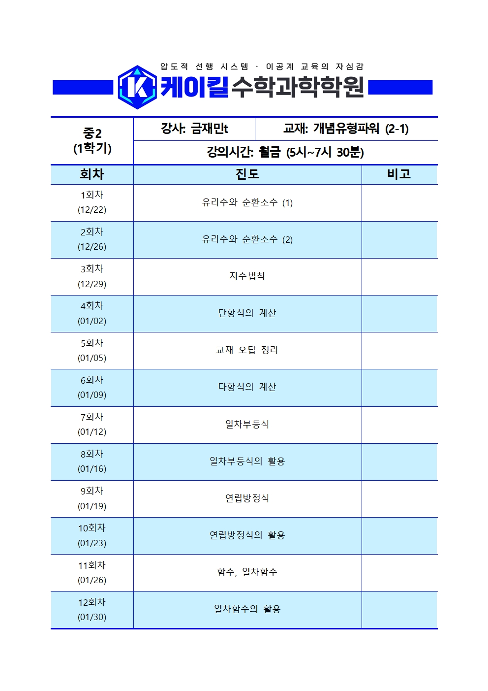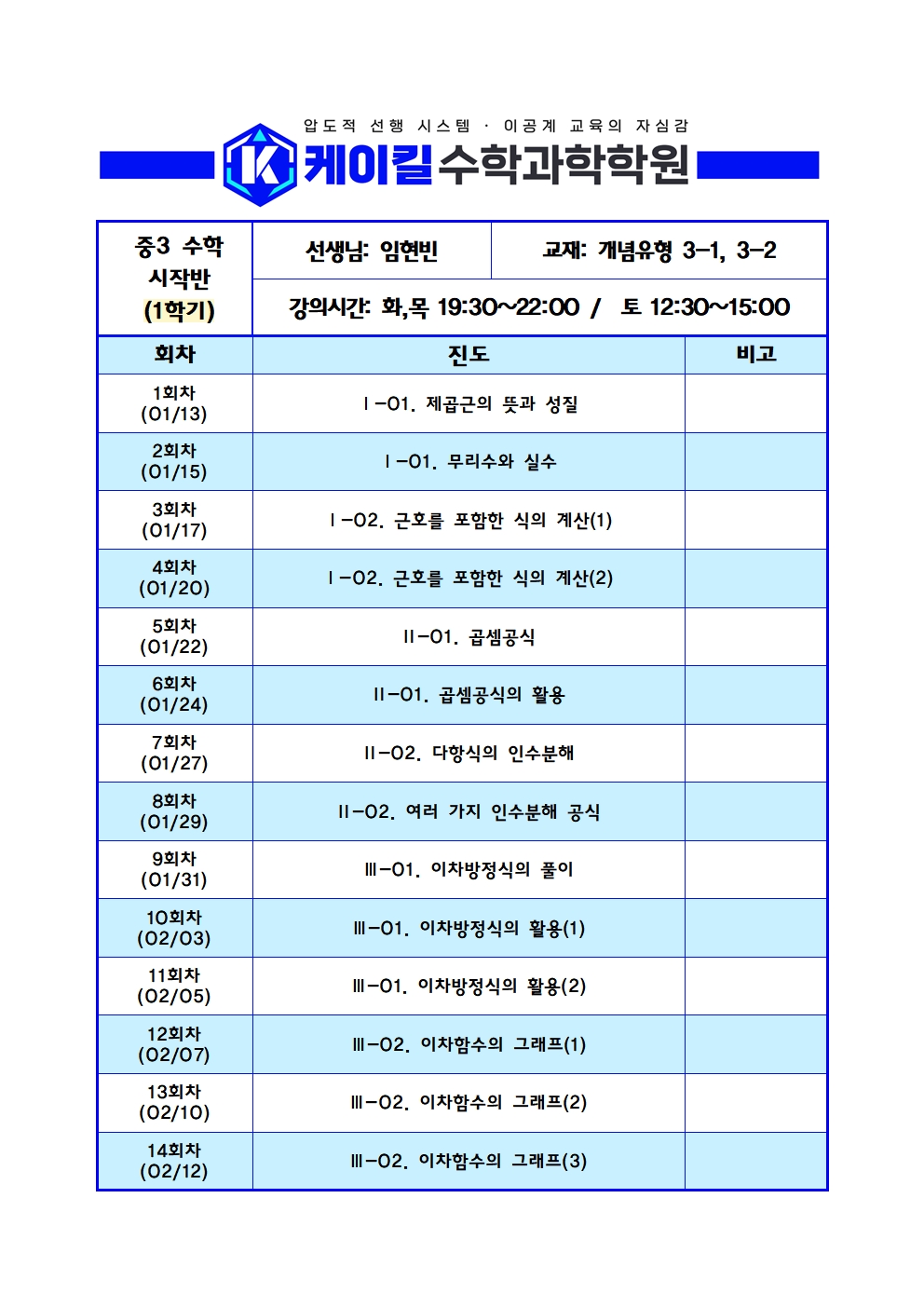 추가) 중3 수학 시작반